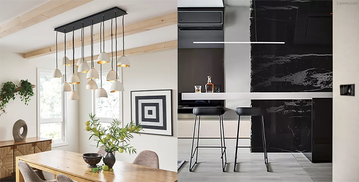 Over kitchen islands or rectangular dining tables, both the Vega Minor LED Linear Suspension and the Nula Multi-Light Pendant look great. They look best in kitchens with enough space to accommodate a longer and more prominent fixture. Use a decorative suspension, recessed lights, and under cabinet lighting to provide both bright task and decorative kitchen lighting. For changing the mood of the room between parties, gatherings, and quiet dinners, a dimmer is a must. Legrand Adorne offers a wide range of light dimmers. They're currently offering a 15% discount on these, so you'll save 15% on your purchase. Click here to shop Vega Minor LED Linear Suspension and Nula Multi-Light Pendant.