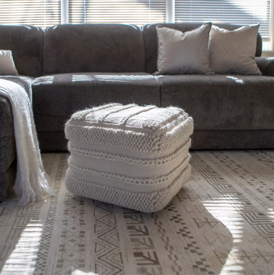 If you want to relax outside, you don't need a couch, coffee table, or even chairs. With just a few weather-friendly pouffes and throw pillows, you can create a fun and casual space for solo or group hangouts. The addition of a sturdy pouffe or ottoman as a seat or side table and a heap of big pillows in bright colors and patterns creates an informal and fun atmosphere.